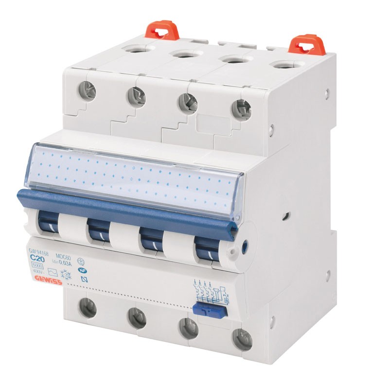 Gewiss Fehlerstrom und Leitungsschutzschalter mit den folgenden Merkmalen: