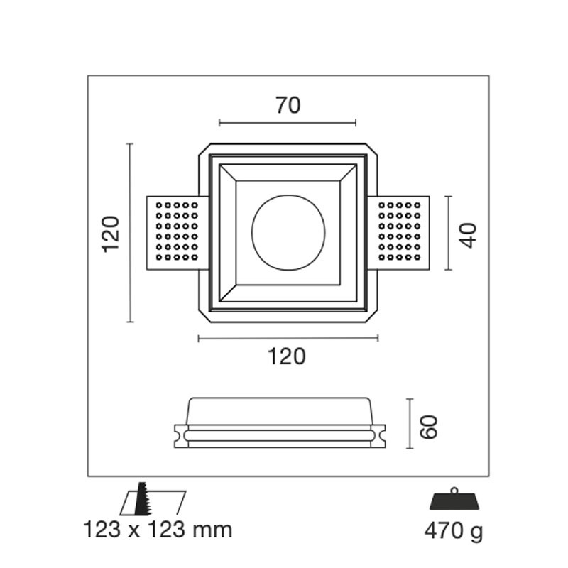 Jahrhundert Jessy quadratischer Gipseinbaustrahler Weiß JESSY-SQ120