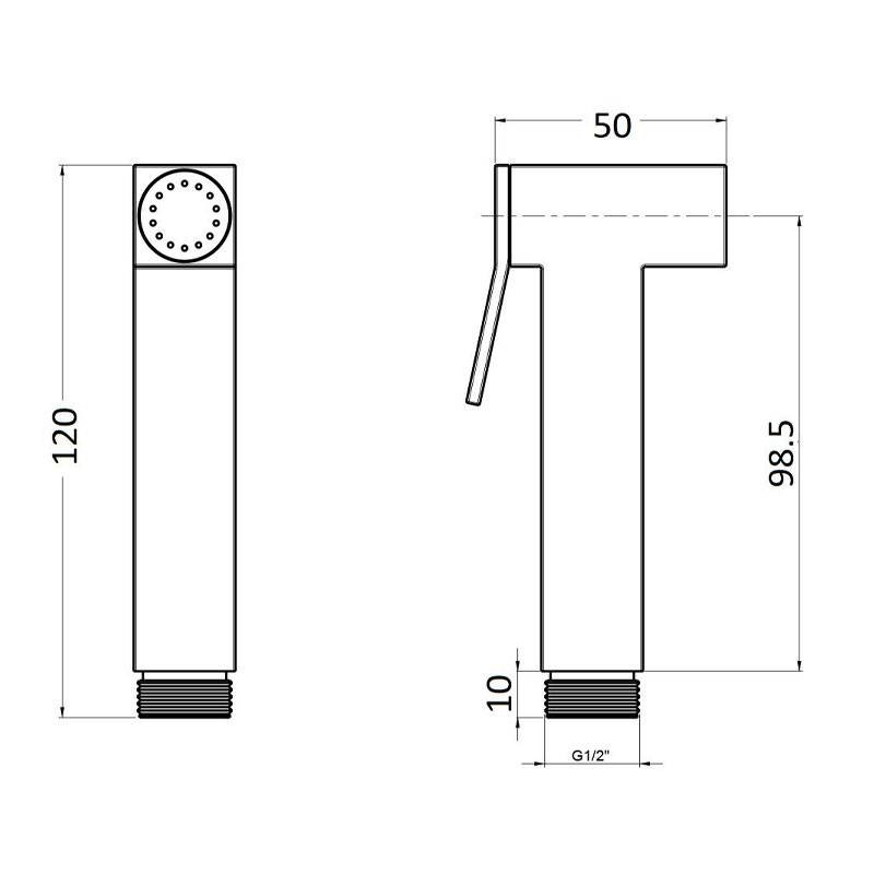 Viereckige WC-Brause, Absperrbetätigung, Material Messing verchromt, Anschluss 1/2 Zoll Außengewinde.