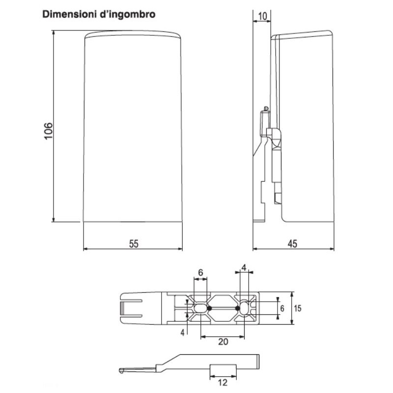 - Abmessungen (BxTxH) 55 x 45 x 106 mm