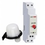 Vemer Dämmerungsschalter für die DIN-Schienenmontage mit externem Fühler. Die Empfindlichkeit kann mit dem Trimmer eingestellt werden.
