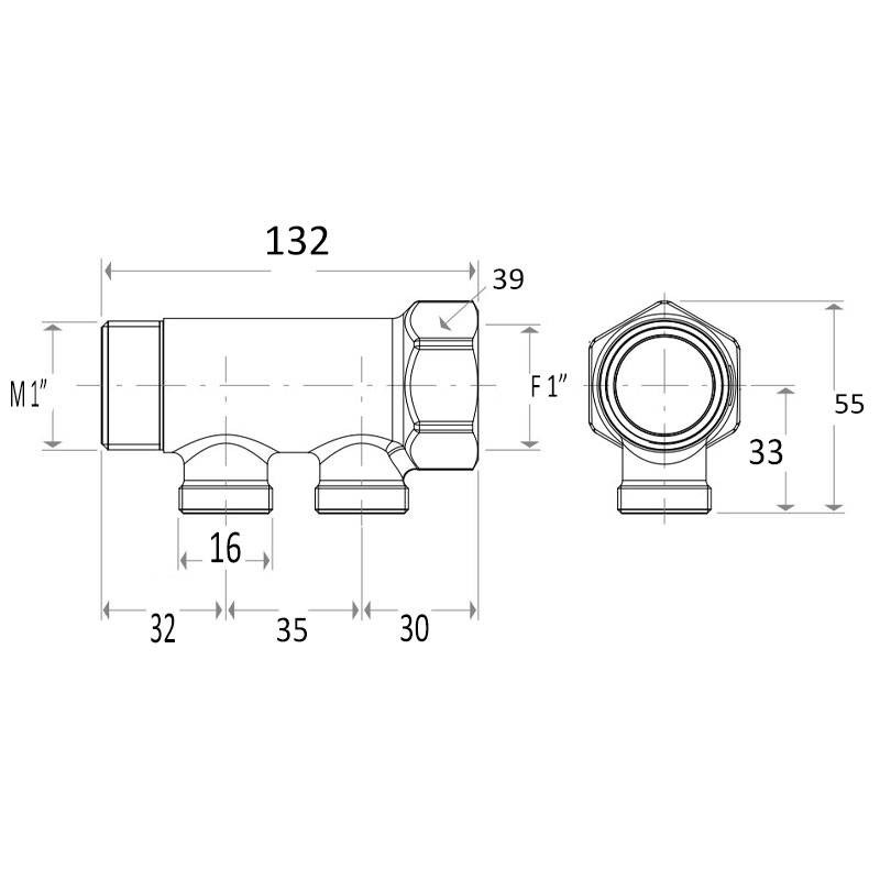 Giacomini modularer Verteiler für Sanitäranlagen A/I 1 Zoll x 16 3 Anschlüsse R580CY043