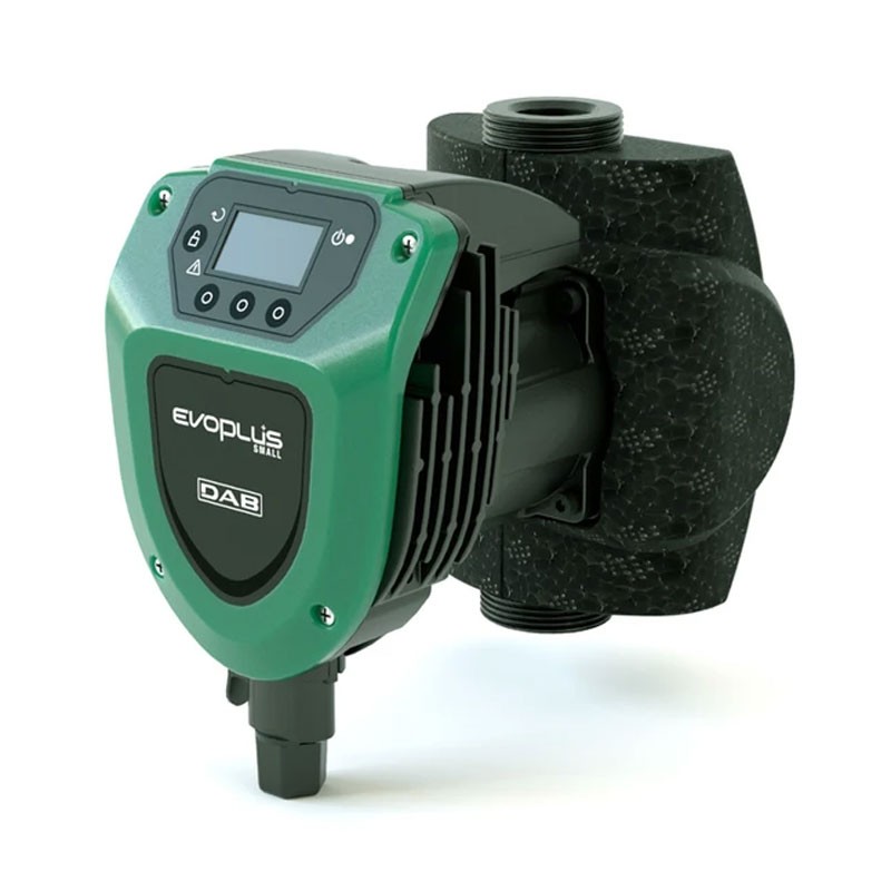 Elektronische Umwälzpumpe DAB Evoplus Small 110/180M, einphasig, Nassläufer, Durchfluss 7,2 m³/h und Förderhöhe 11,1 m. Ideal für Heizungs- und Klimaanlagen in zivilen und gewerblichen Gebäuden.