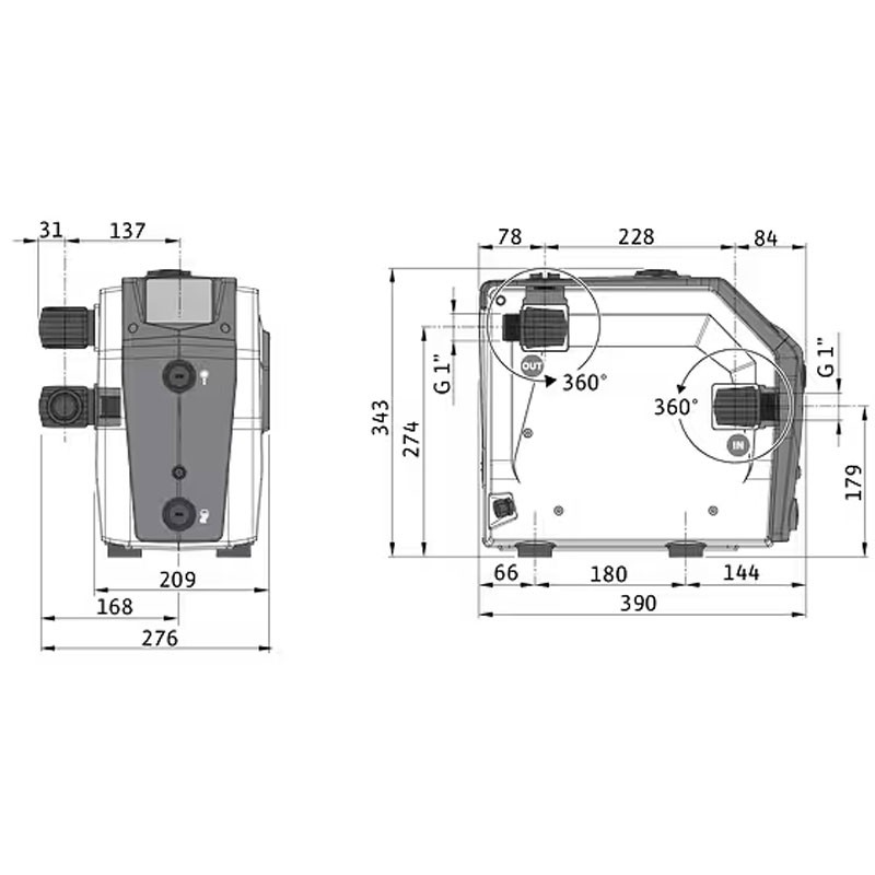 Das hintergrundbeleuchtete LED-Display mit Bedientasten ermöglicht die Überwachung des Drucks und des Betriebszustands in Echtzeit, was die Bedienung einfach und intuitiv macht. Dank der integrierten Schalldämpfer arbeitet die Pumpe mit einem extrem niedrigen Geräuschpegel und gewährleistet optimalen akustischen Komfort.