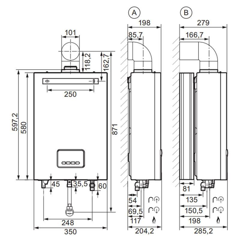 - Abgasaustritt mm 80/80 - 80/125 - 60/100