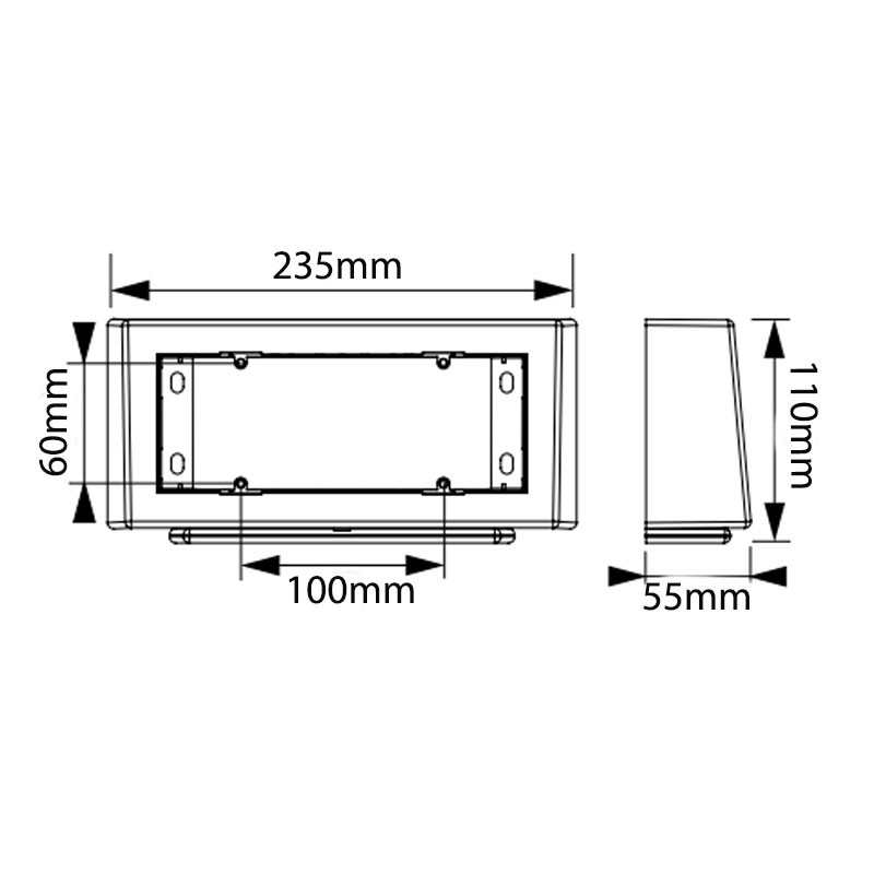 Hergestellt aus technischem Kunststoffmaterial, gewährleistet die Dose eine hohe Beständigkeit gegen Stöße, Hitze und Alterung. Das rechteckige Design ist kompakt, aber geräumig, mit Abmessungen von 235 x 55 x 110 mm, was eine ordentliche Verwaltung der internen Verkabelung ermöglicht. Die weiße Farbe RAL 9010 verleiht ihm ein neutrales und professionelles Aussehen, das für jeden Kontext geeignet ist.