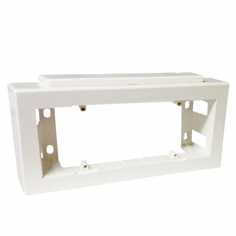 Dank seines Achsabstands von 100 x 60 mm ist der Kasten perfekt kompatibel mit allen modularen Geräten, die den italienischen Standards entsprechen. Dies gewährleistet maximale Freiheit bei der Auswahl der zu installierenden Komponenten und eine einfache Konfiguration entsprechend den spezifischen Anforderungen der Umgebung.