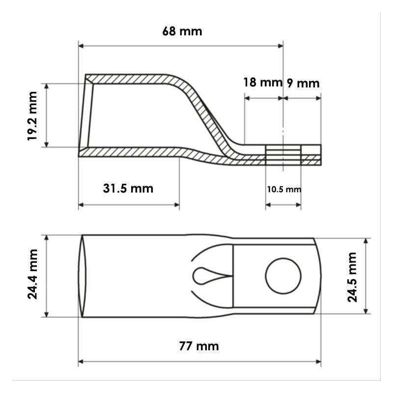 Der aus geglühtem Elektrolytkupfer mit einem Reinheitsgrad von über 99,9 % hergestellte Kabelschuh garantiert eine hervorragende Leitfähigkeit und mechanische Beständigkeit. Die Verzinnung schützt den Kabelschuh vor Oxidation und verbessert die Haltbarkeit auch in Umgebungen mit hoher Luftfeuchtigkeit oder Verunreinigungen.
