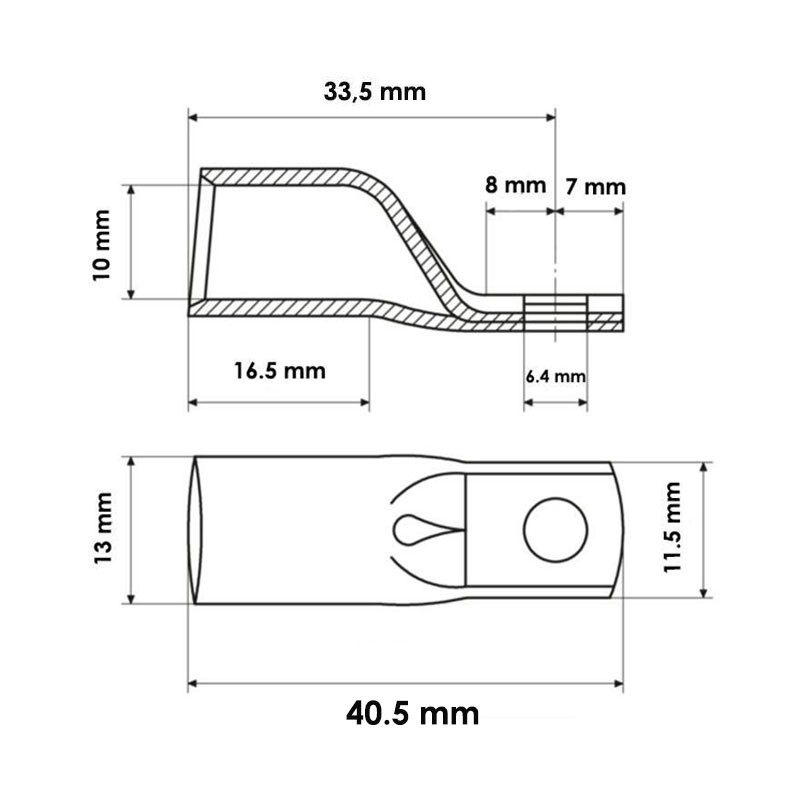 Der aus geglühtem Elektrolytkupfer mit einem Reinheitsgrad von über 99,9 % hergestellte Kabelschuh garantiert eine hervorragende Leitfähigkeit und mechanische Beständigkeit. Die Verzinnung schützt den Kabelschuh vor Oxidation und verbessert die Haltbarkeit auch in Umgebungen mit hoher Luftfeuchtigkeit oder Verunreinigungen.