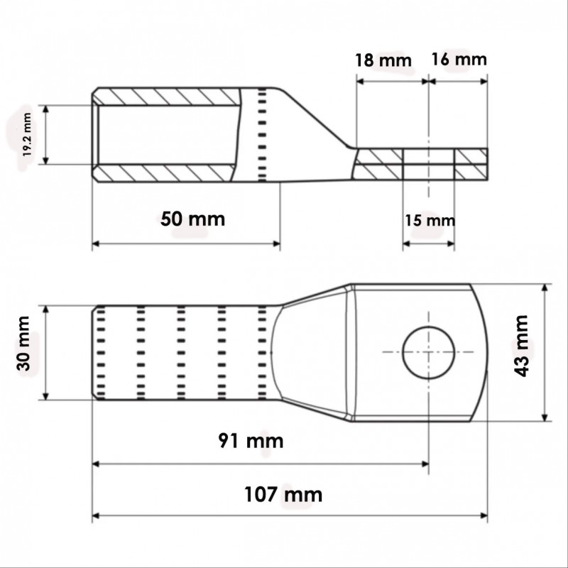 Das Fehlen einer Inspektionsöffnung ist ein technisches Merkmal, das das Eindringen von Feuchtigkeit, Staub und Schmutz verhindern soll, was insbesondere bei Installationen im Freien oder unter der Erde nützlich ist. Der Kragen ist für eine Standardabisolierung von 55 mm ausgelegt und gewährleistet ein sicheres und präzises Crimpen mit den Hauptgeräten von Cembre.