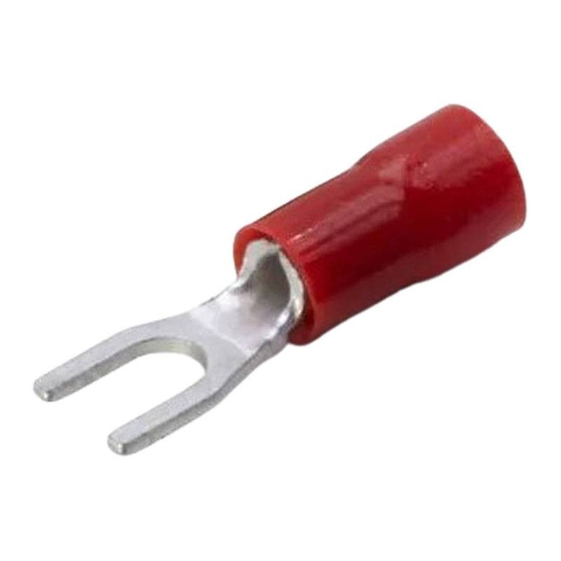 Der vorisolierte rote Gabelkabelschuh ist die ideale Lösung, um sichere, schnelle und dauerhafte Verbindungen zwischen Kupferleitern und Schraubklemmen herzustellen. Er ist für Schrauben mit einem Durchmesser von M3,5 ausgelegt und eignet sich für zivile und industrielle Elektroinstallationen, bei denen ein stabiler Kontakt erforderlich ist, der sich leicht montieren und demontieren lässt, ohne dass die Klemme vollständig gelöst werden muss.