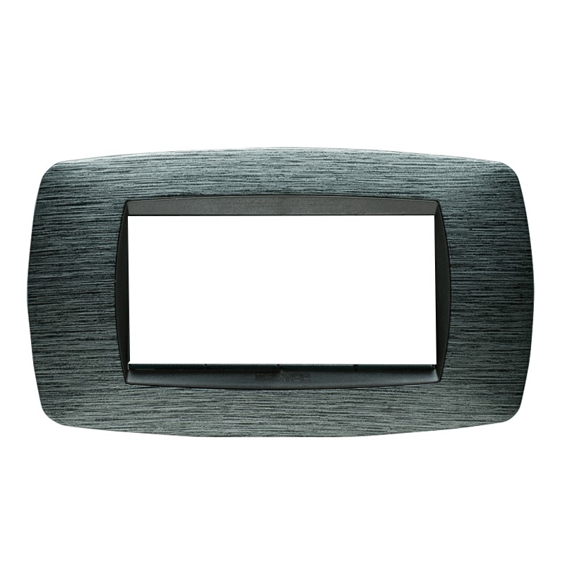 Master Modo Abdeckrahmen 4 Module grau satiniert Farbe. Der Abdeckrahmen wird auf die Rahmen 38004, 38004-F montiert, oder durch den Adapter 39034 ist der Abdeckrahmen kompatibel mit den Rahmen LN4704 und L4704 der Bticino Living und LivingLight Serie.