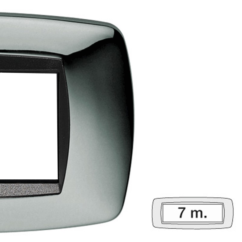Master Modo Abdeckrahmen 7 Module Farbe Chrom. Der Abdeckrahmen wird auf die Rahmen 38007, 38007-F montiert, oder durch den Adapter 39037 ist der Abdeckrahmen kompatibel mit den Rahmen LN4707 und L4707 der Bticino Living und LivingLight Serie.