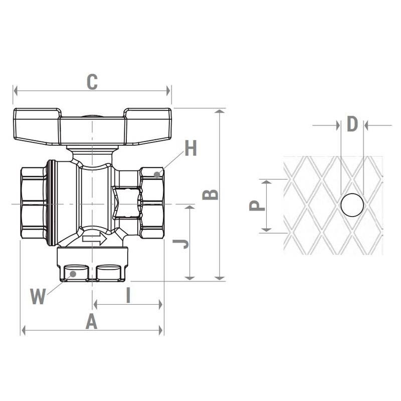 Giacomini Kugelventil mit Filter mit den folgenden Merkmalen: