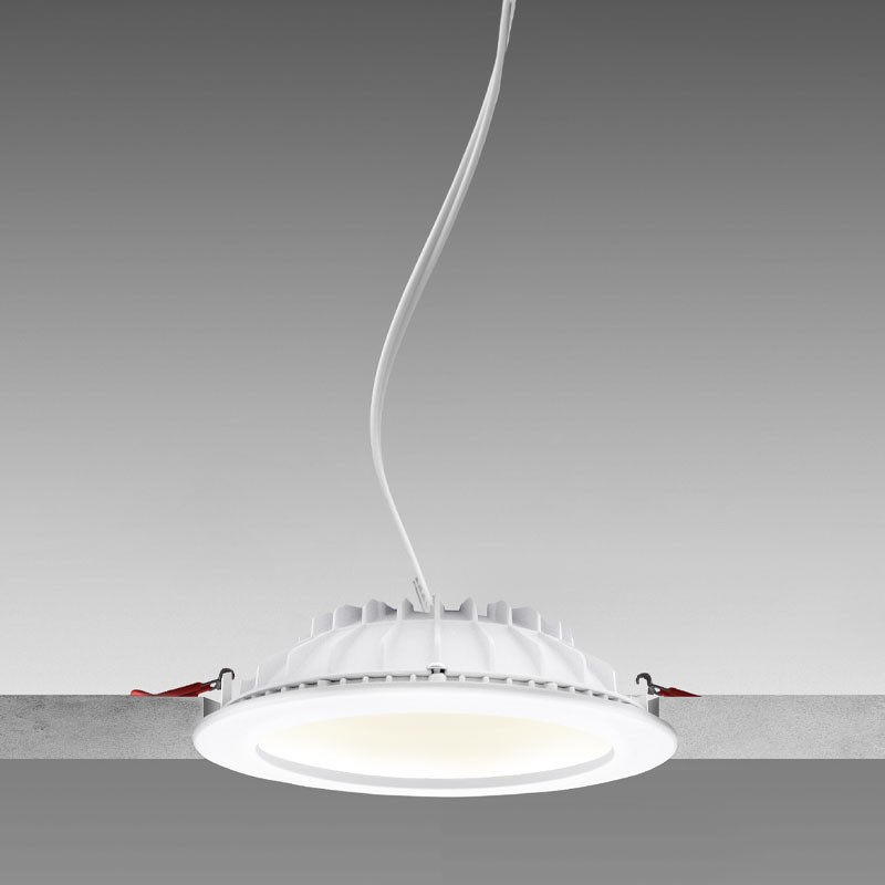 Der Strahler ist für Bohrungen von 210 bis 215 mm geeignet und lässt sich leicht in Gipskartondecken oder modulare Strukturen integrieren. Die direkte 220-240-V-Stromversorgung vereinfacht den Anschluss.