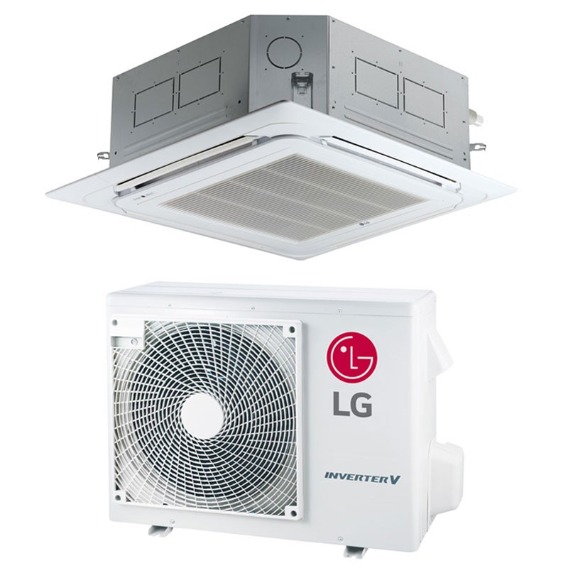 Lg Standard Inverter Einphasen-Kassetten-Klimagerät, 4-Wege für die Deckenmontage. Zweifache Temperaturregelung, optional Wi-Fi-kompatibel, unabhängige Ausrichtung und Trockenkontaktfunktion, mit Energieklasse A++/A.