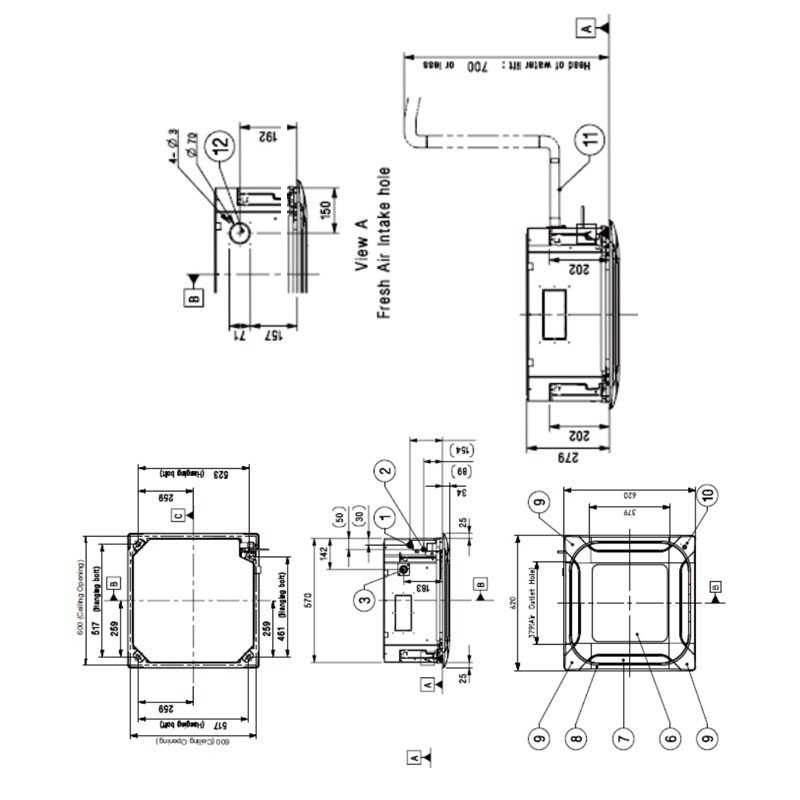 1 Gitter für Innengerät 620x620mm PT-QAGW0
