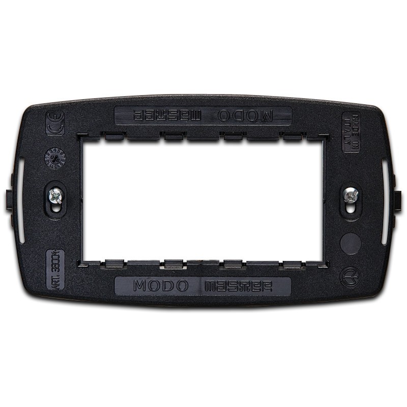 Kunststoffträger Master Modo 4 Module (Einsätze), geeignet für rechteckige Unterputzdosen. Mit dieser Unterstützung können nur Master Modo und Mix-Platten angeschlossen werden. Die Stützen werden mit Schrauben an den Unterputzdosen befestigt und ermöglichen die Montage von Platten der entsprechenden Serie.