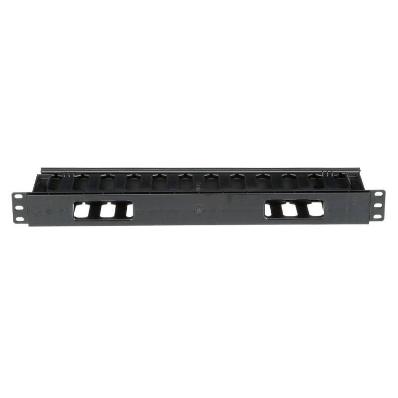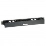 Der einseitige Kabelmanager hat eine Größe von 1 HE, umfasst eine doppelt aufklappbare Frontabdeckung und ist schwarz.