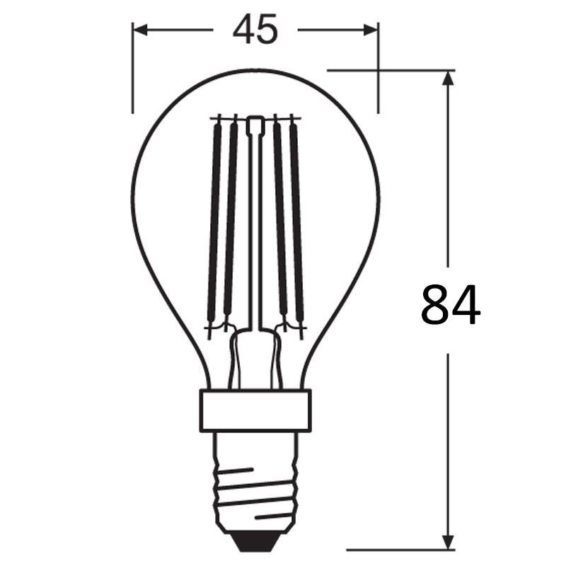 Mit der Standard-E14-Fassung und den kompakten Abmessungen (Ø45 mm x 84 mm) passt sie problemlos in viele bestehende Leuchten. Die Glühbirne ist außerdem quecksilberfrei und entspricht den europäischen CE-, EAC- und UKCA-Vorschriften, wodurch Sicherheit und Umweltfreundlichkeit gewährleistet sind.