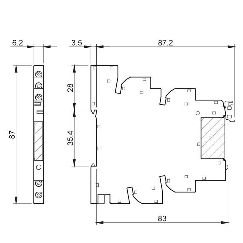 Mit einer Breite von nur 6,2 mm ist dieses modulare Relais ideal für die Montage auf einer 35 mm DIN-Schiene geeignet, wodurch der Platz in Schaltschränken optimiert wird. Der Schraubanschluss gewährleistet eine einfache und sichere Verdrahtung.