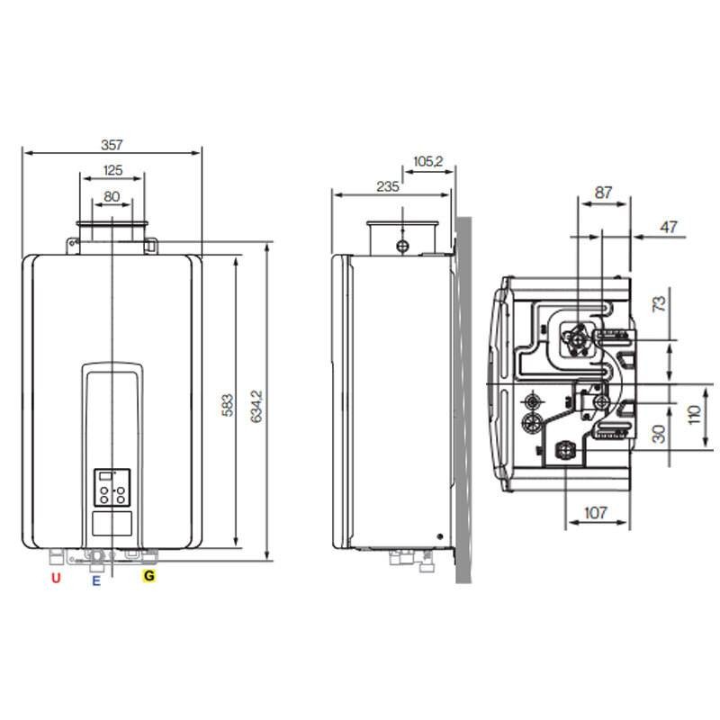 Infinity 28i ist der Warmwasserbereiter, der 28 Liter/Minute warmes Wasser liefert. Dieser Warmwasserbereiter wird in einem Raum installiert und muss an einen Schornstein angeschlossen werden, damit die Abgase ins Freie abgeleitet werden können.