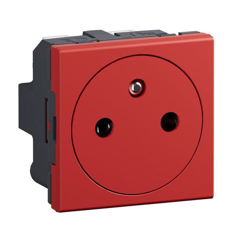 Bticino MatixGO Flachsteckdose J4142ARF rot 2 Module, französisch/belgischer Standard 2P+T 16A 250Vac: flaches Design, das sich mit eingestecktem Stecker zurückzieht, abgeschirmte Kontakte und automatische Klemmen für eine schnelle und sichere Installation.