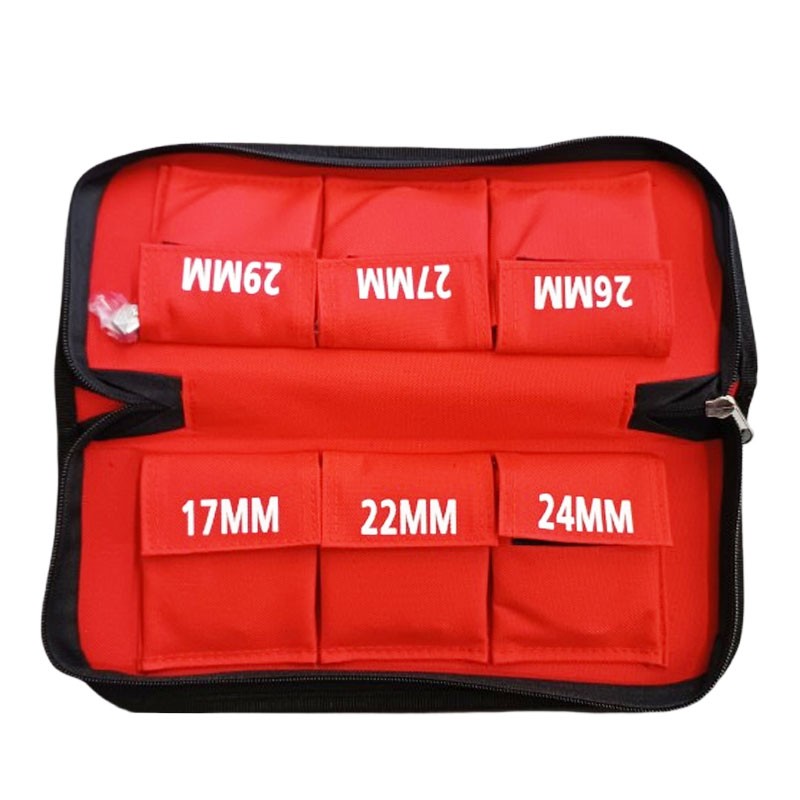 Auswechselbare Einsätze: 6 Einsätze in den Größen 17, 22, 24, 26, 27 und 29 mm enthalten