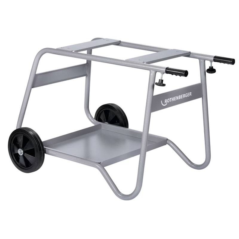 Robuster und handlicher Wagen für den sicheren und praktischen Transport der Rothenberger SUPERTRONIC 3SE, 4SE und ROGROOVER 12" Gewindewirbelmaschinen, der auch als Werkbank verwendet werden kann.