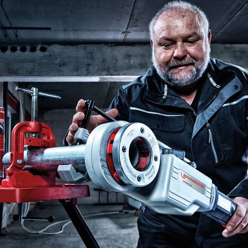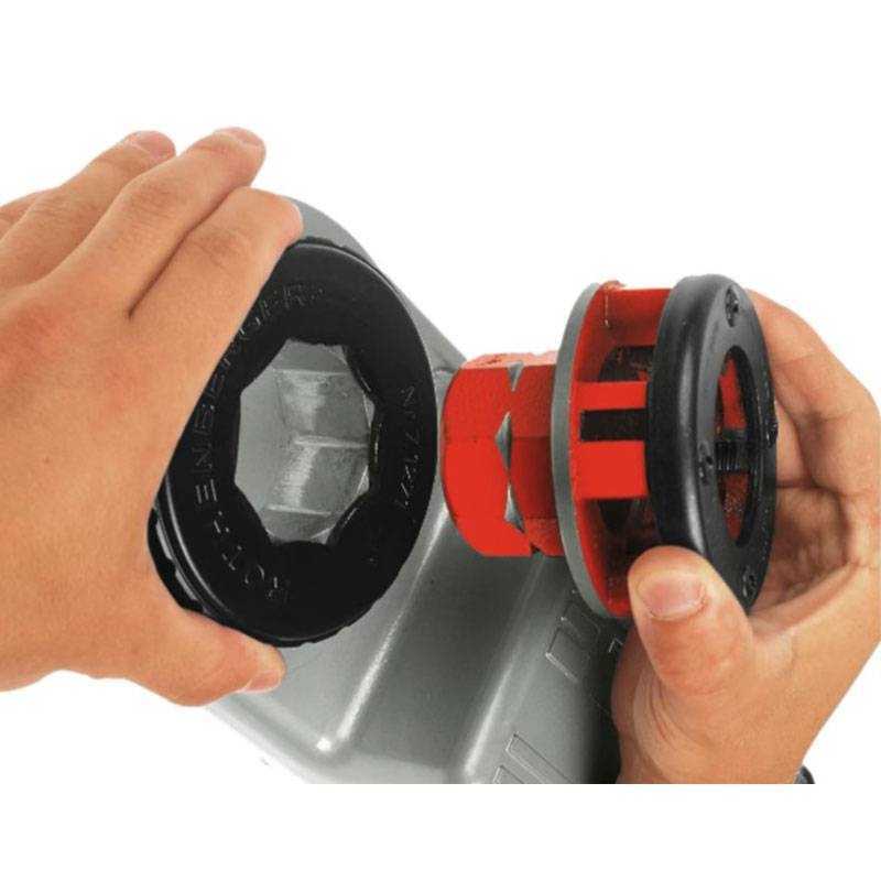 Rothenberger SUPERTRONIC 2000 BSPT R1/2-2" Gewindeschneidkluppe mit den folgenden Eigenschaften: