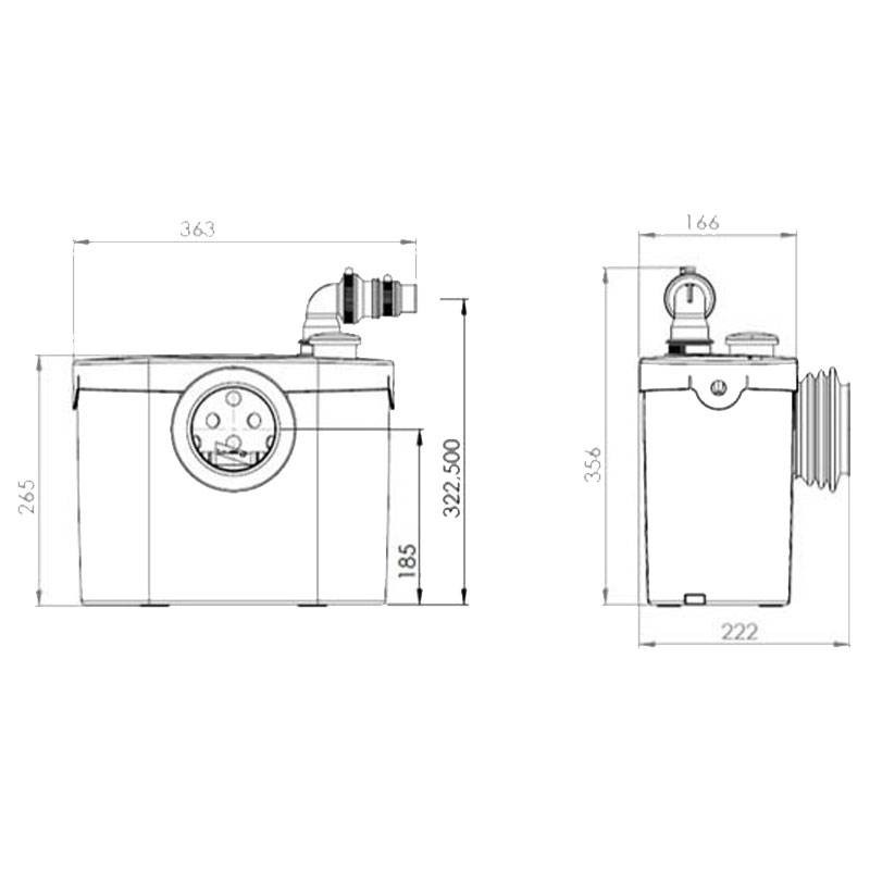 Die Sanitop UP SPSUPSanitrit SFA Hebeanlage hat 2 Eingänge für den Anschluss an WCs und Waschbecken, für die Entwässerung und Entsorgung von schwarzem Abwasser. Er ermöglicht die Installation einer Toilette in jeder Ecke des Hauses. Kompatibel mit allen Keramik-WCs.