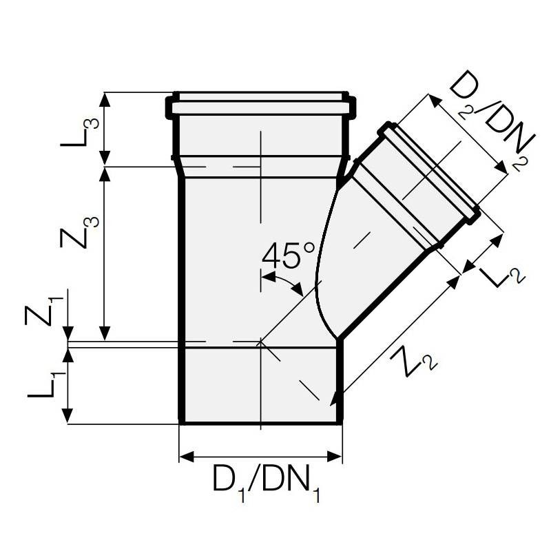 45-Grad Abwasseranschluss für Valsir PP Polypropylen Abwasserrohre PP3 mit folgenden Eigenschaften:
