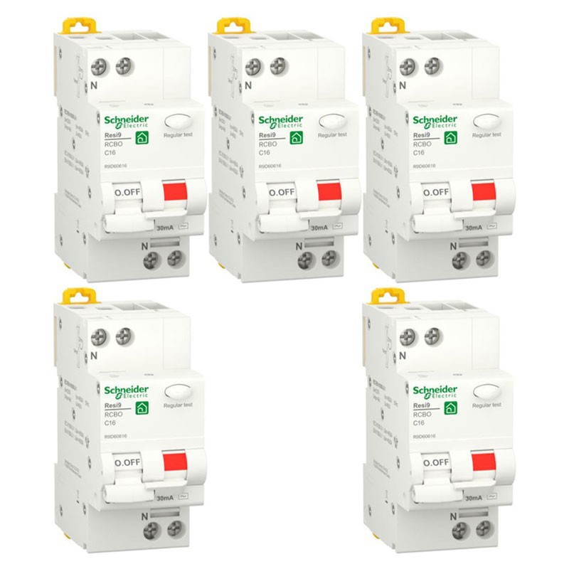 Schneider Resi9 FI- und LS-Schalter 5 Stück Kit mit den folgenden Eigenschaften: