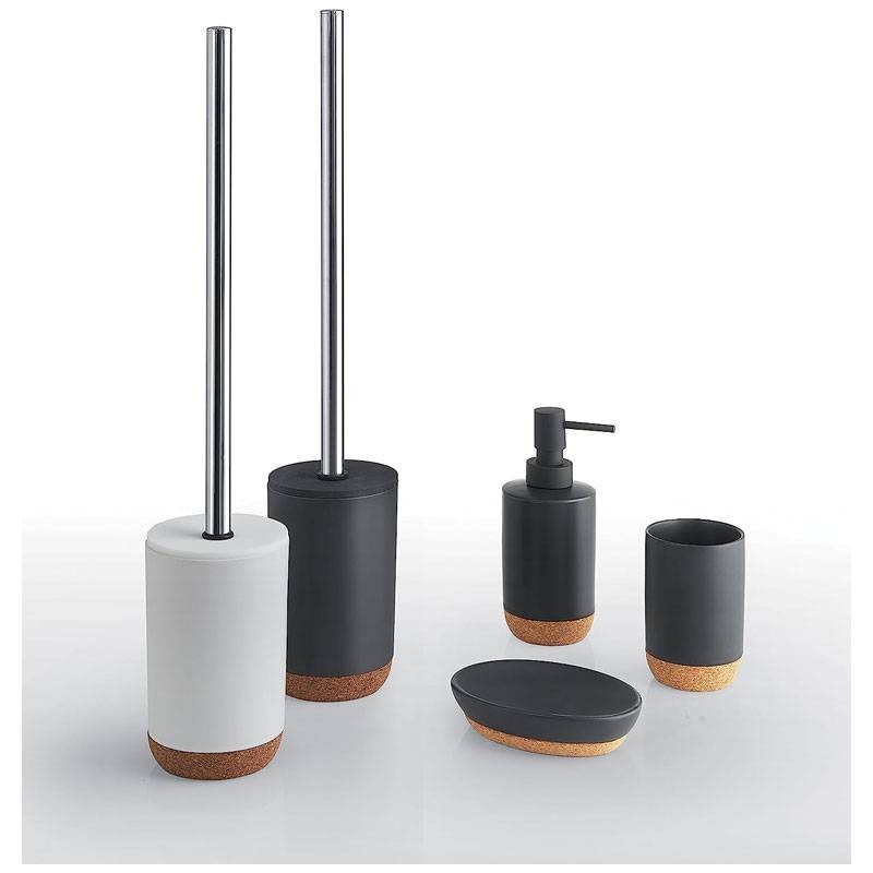 Die Serie Ilary besteht auch aus einem Zahnputzbecher, einem Seifenspender mit verchromtem Kunststoffspender und einer Toilettenbürste.