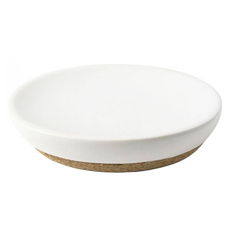 Gedy Ilary Seifenschale weiße Farbe, aus Keramik und Kork, Größe 13x9,5x3cm.