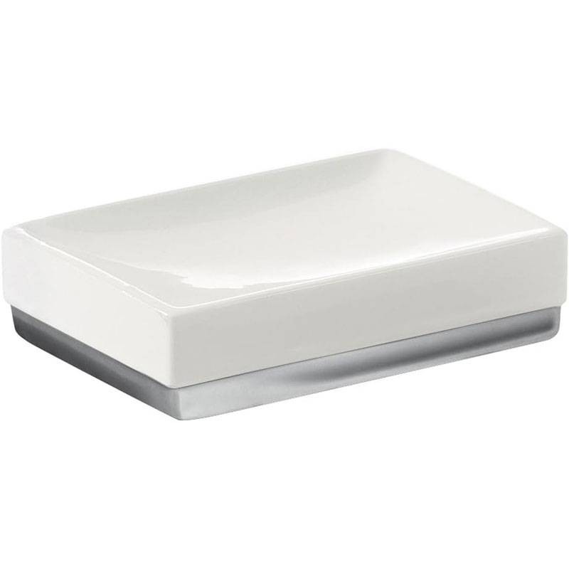 Gedy Lucy Seifenschale Farbe weiß und Chrom Basis, aus Keramik, rechteckige Form, Abmessungen 12x8,2x3cm.