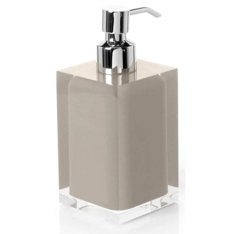 Gedy Rainbow Seifenspender hell graubeige , aus Harz, Größe 7x7x16,2cm, mit verchromtem Kunststoffspender.