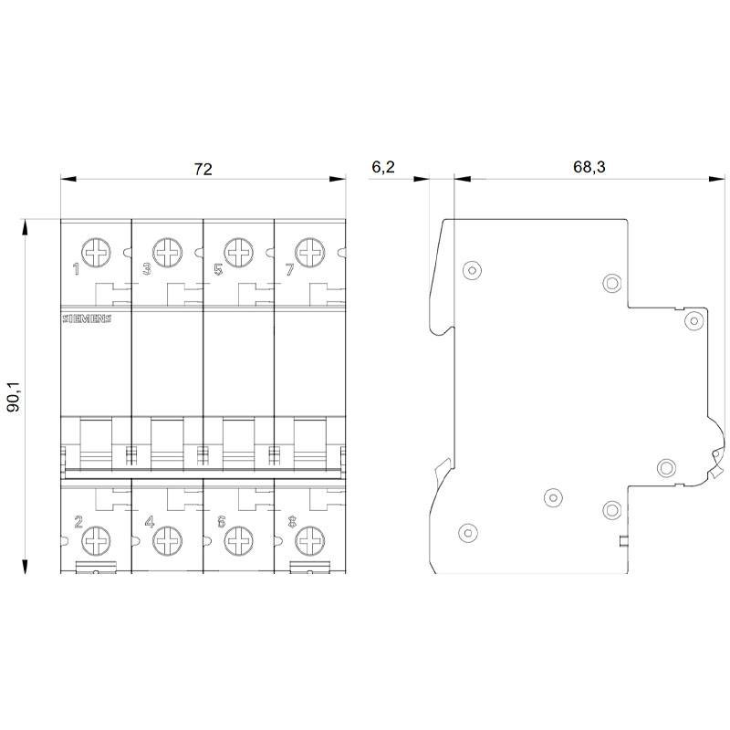 Siemens LS-Schalter 20A 4P 10KA D Kurve 4 Module 5SL44208
