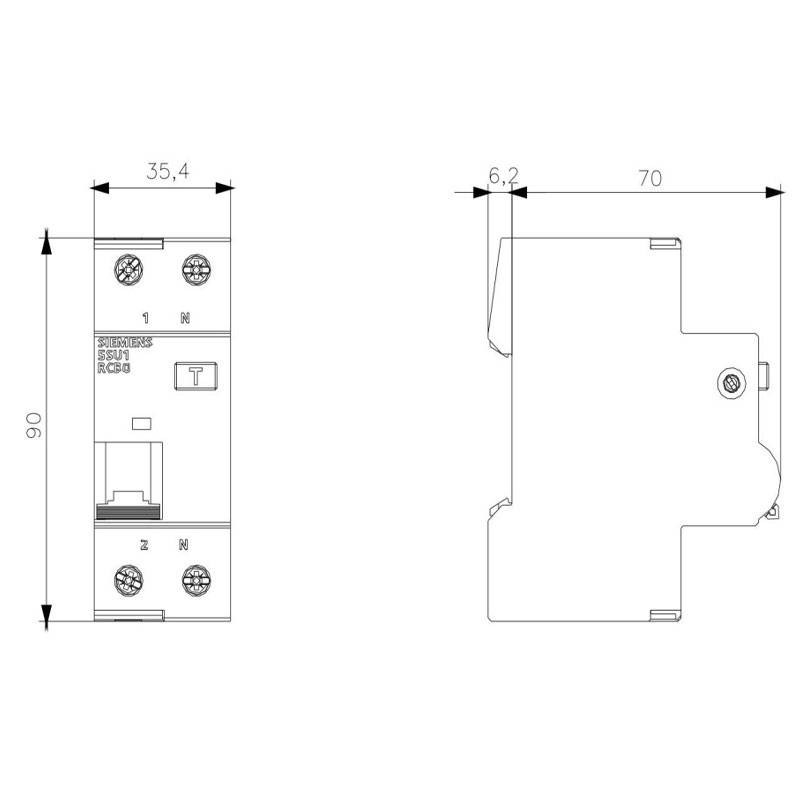 Siemens RCBO 5SU13544KK20 FI/LS-Schalter mit den folgenden Merkmalen: