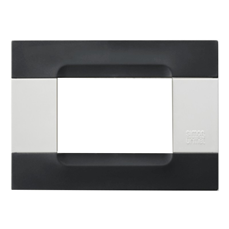 Polychrome Abdeckrahmen Urmet Simon Nea weiß mit horizontalen Kunststoffeinsätzen auckland schwarz, 3 Module. Sie kann nur auf dem Rahmen 10703N installiert werden.