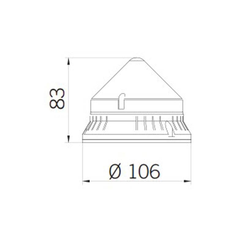 Beleuchtungseinrichtung für industrielle Anwendungen an Bord von Maschinen mit 90 mm Durchmesser, mit STEADY/FLASHING-Lichtquelle mit Glühlampe. Die Bake hat ein integriertes akustisches Signal.