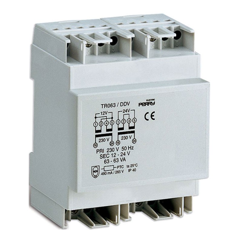 Perry-Transformator 63VA Ausgänge 12-12-24V 6 DIN 1TDTR063/DDV