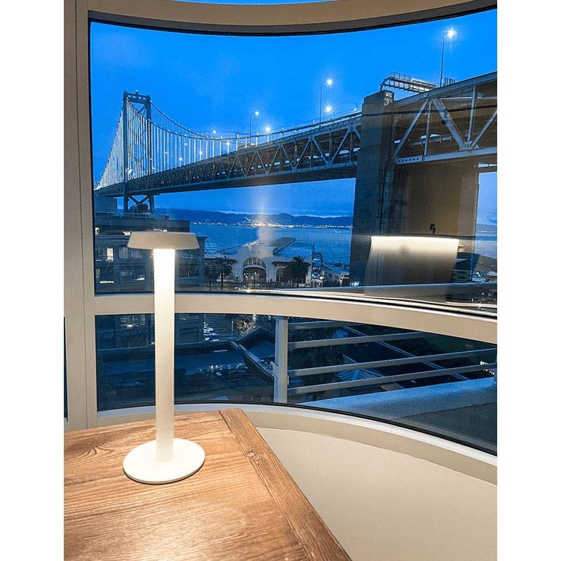 Schnurlose, dimmbare Tischleuchte der Serie Marama von Duralamp. Elegantes und essentielles Design, perfekt für moderne und klassische Umgebungen, diffuses, nach unten gerichtetes Licht: