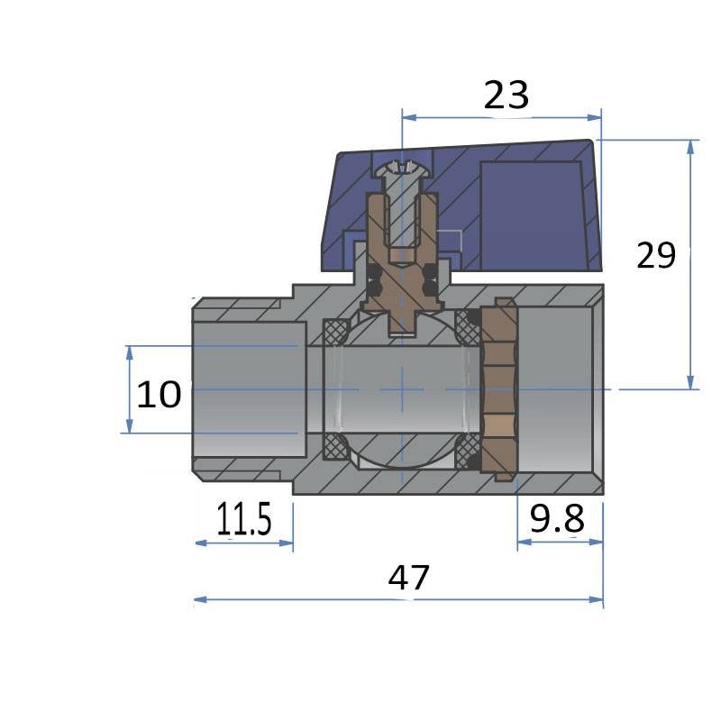 Atusa Mini-Kugelhahn mit Flügelgriff A/I 1/2 blau Messing