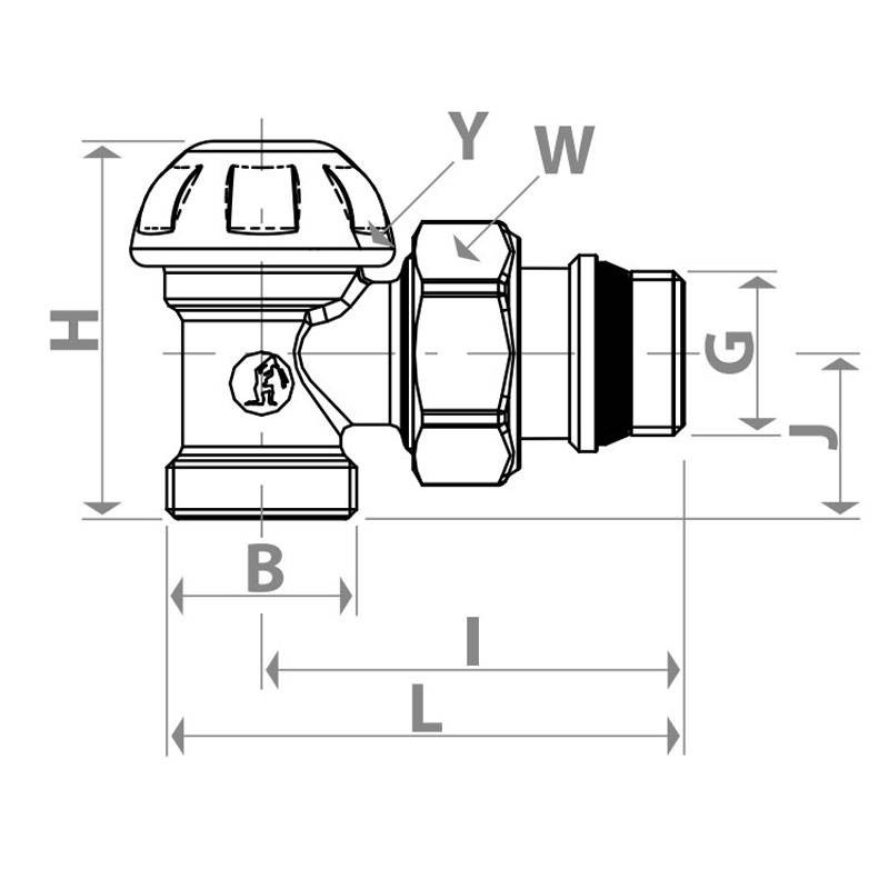 Winkel-Rücklaufverschraubung für Giacomini-Heizkörper mit Eisenrohranschluss mit den folgenden Eigenschaften: