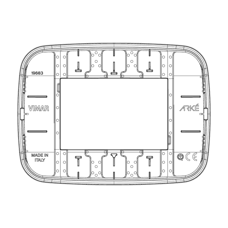 Platte Vimar Arkè Runde 3 Module (Früchte, Orte) Reflexeis. Die Platte wird nur an der Halterung 19613 montiert. Die Platte wird nicht bei anderen Vimar-Serien installiert, sondern nur bei der Arkè-Serie.