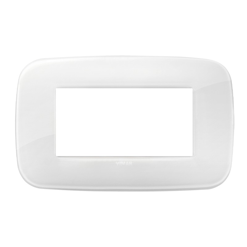 Platte Vimar Arkè Runde 4 Module (Früchte, Orte) Farbe Reflex Eis. Die Platte wird nur an der Halterung 19614 montiert. Die Platte wird nicht bei anderen Vimar-Serien installiert, sondern nur bei der Serie Arkè.