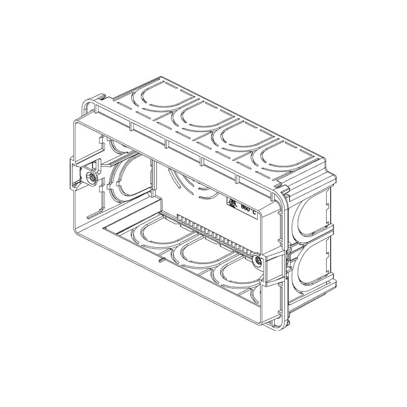- Einheitliche rechteckige Unterputzdose 4 Module (GW 650 °C) für Mauerwerkswände