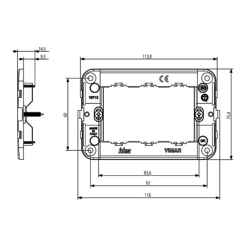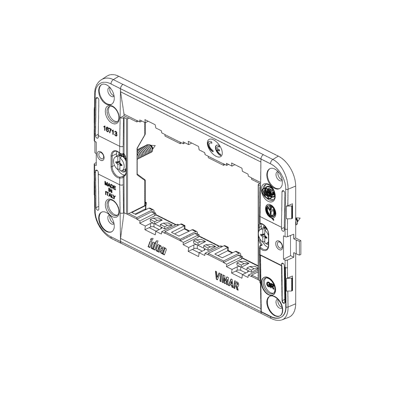 Rahmen 3 Module, mit Schrauben, für Boxen 3 Module, grau. Diese Halterung ermöglicht es, nur die Platten Vimar Idea einzuhängen.