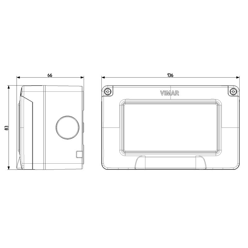 Vimar Wandgehäuse, kompatibel mit Eikon, Arké und Plana. Ideal für die Installation im Freien oder in feuchten Umgebungen, mit den folgenden Eigenschaften: